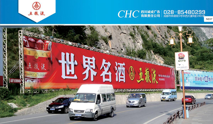 多年來,誠成廣告專注于中國旅游景區戶外媒體資源的實效研究與整合,形成了以調研購買、開發建設、創意設計、制作發布、監測評估為一體的旅游景區戶外傳媒服務體系。時至今日,誠成廣告的媒體資源已覆蓋九寨溝、黃龍景區,峨眉山、樂山景區,廣漢三星堆文化旅游區以及拉薩、桂林、麗江、張家界等旅游景區和旅游城市,先后為中國移動、中國郵政、中國農業銀行、奧迪汽車、五糧液等國內外上百家知名企業成功進行了企業及品牌形象傳播,在業界獲得諸多美譽。